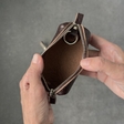 Компактна ключниця з натуральної шкіри. Темно-коричнева шкіра, тисненна під слонову шкіру. Закривається на блискавку та має всередині кільце-карабін