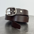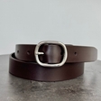 Жіночий ремінь в шоколадному кольорі з овальною пряжкою з нержавіючої сталі